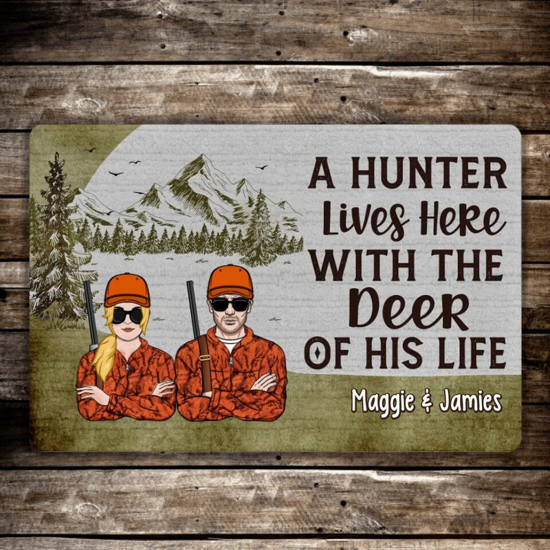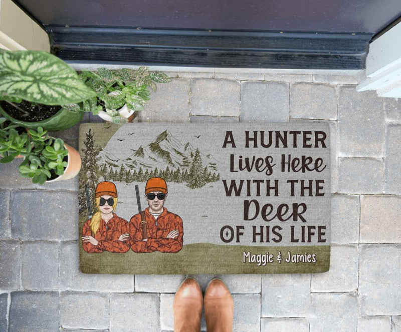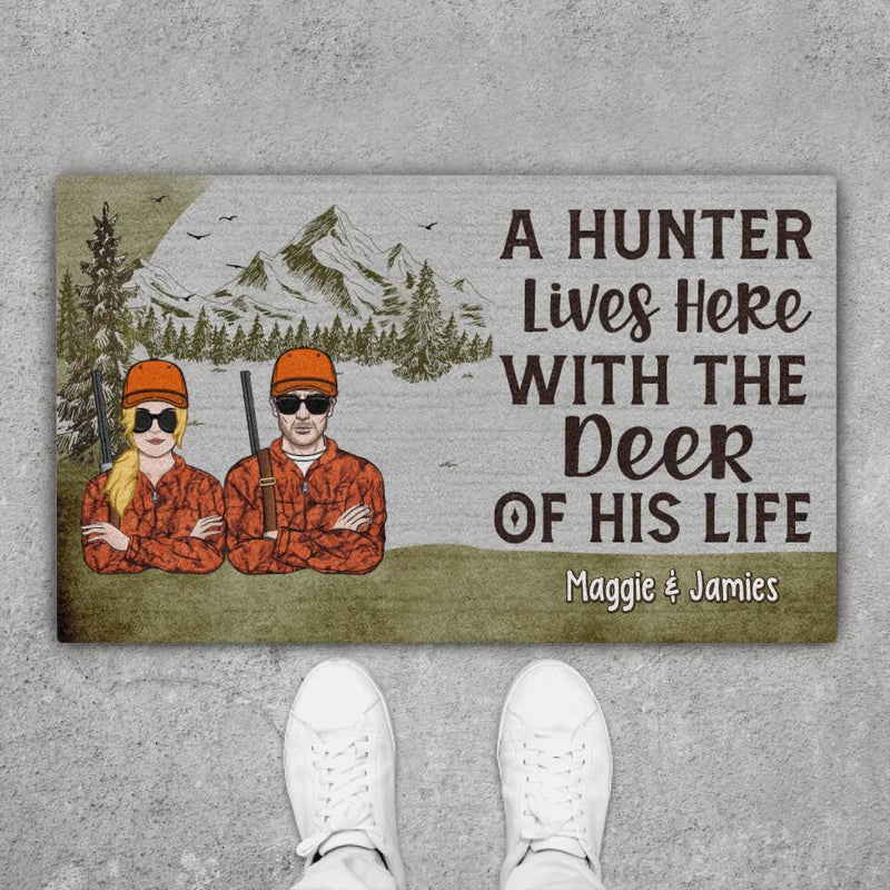 Personalized Hunting Doormat for Couples & Outdoor Lovers – A Hunter Lives Here With the Deer of His Life
