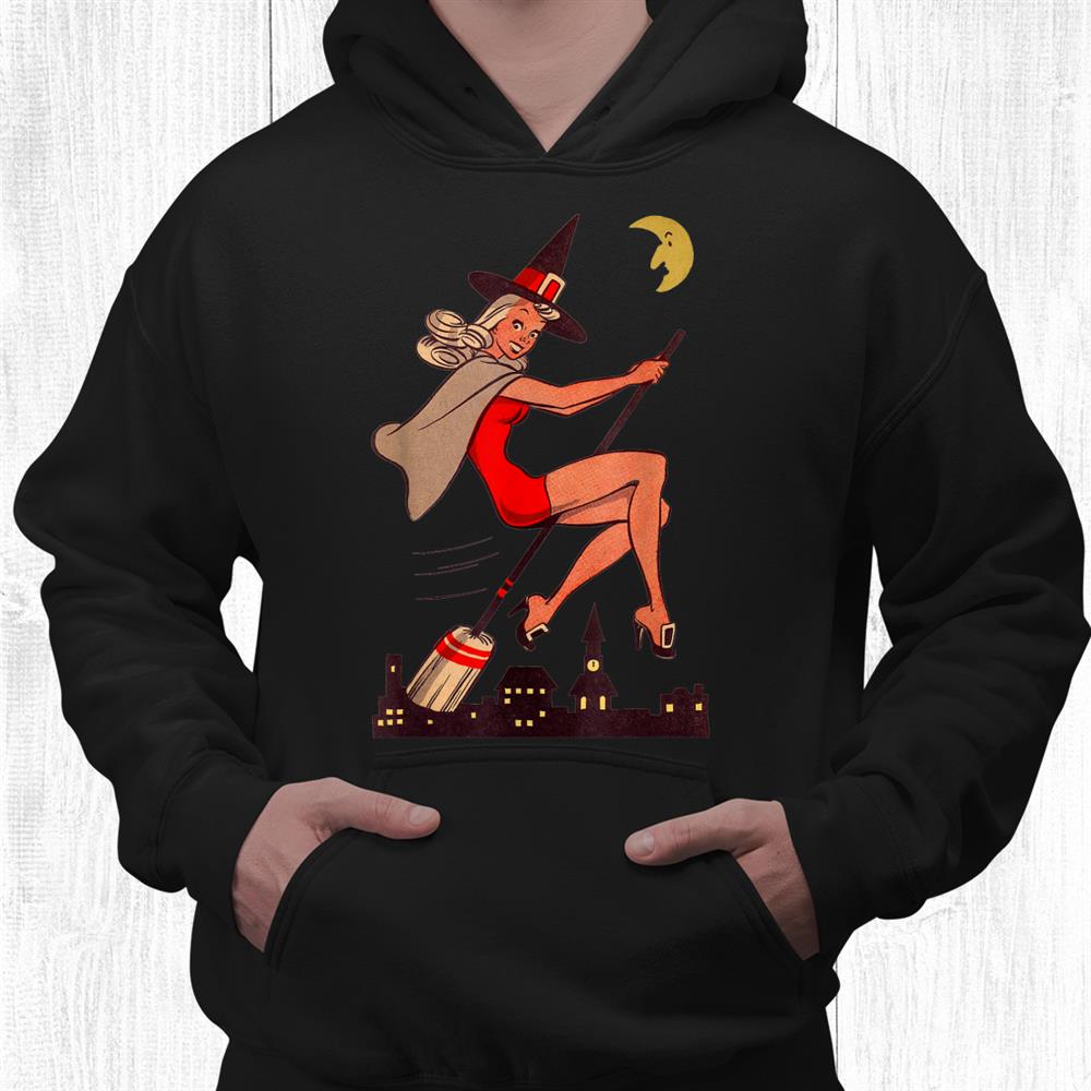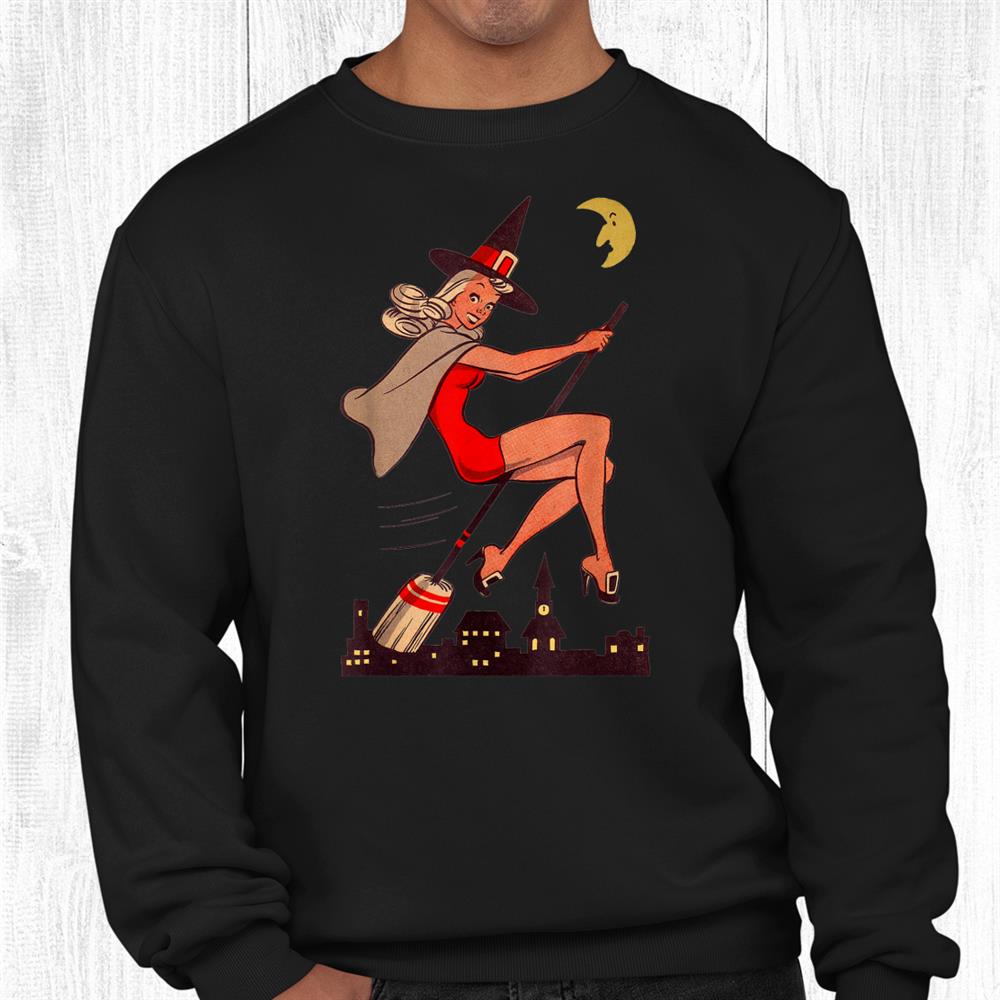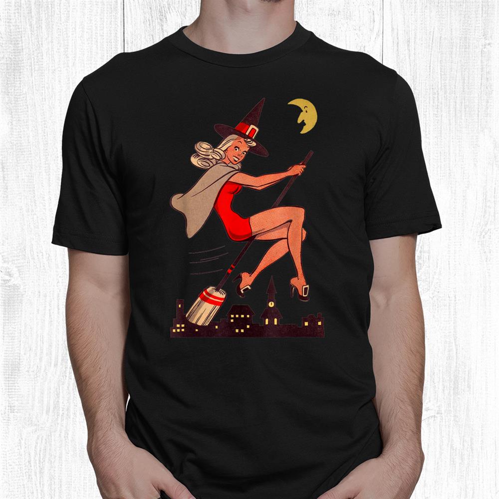 Pinup Style Tee – Vintage Pin Up Witch Halloween Pinup Girl Witches Broom Shirt channels retro charm with a spooky edge. Inspired by classic pin-up art, this shirt features a stylish witch perched on her broom with a confident pose. The vintage look pairs beautifully with jeans, skirts, or costume accessories. Made from premium cotton, it’s soft and breathable for all-day comfort. A funny Halloween shirt with timeless allure for anyone who loves 1950s style and a dash of witchy glamour.