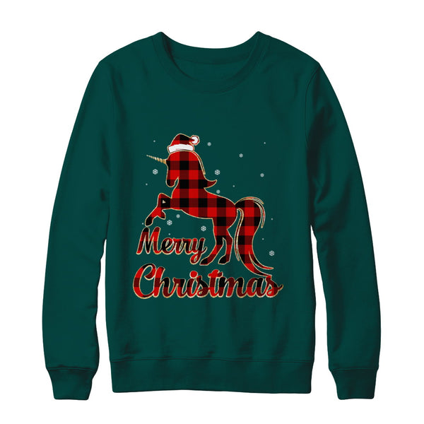 Red Buffalo Plaid Unicorn Merry Christmas Sweater for Kids and Adults