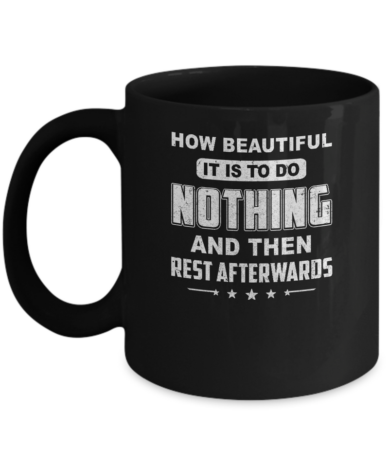 The How Beautiful It Is To Do Nothing Then Rest Afterwards Mug is a relaxing and inspirational gift for anyone who appreciates leisure. Made from high-quality ceramic, it’s microwave and dishwasher safe for daily coffee or tea enjoyment. Perfect for self-care, birthdays, or novelty gifting, it celebrates the art of resting and enjoying life’s simple pleasures. Durable and stylish, it’s a thoughtful way to encourage relaxation while adding charm and functionality to daily beverage routines.