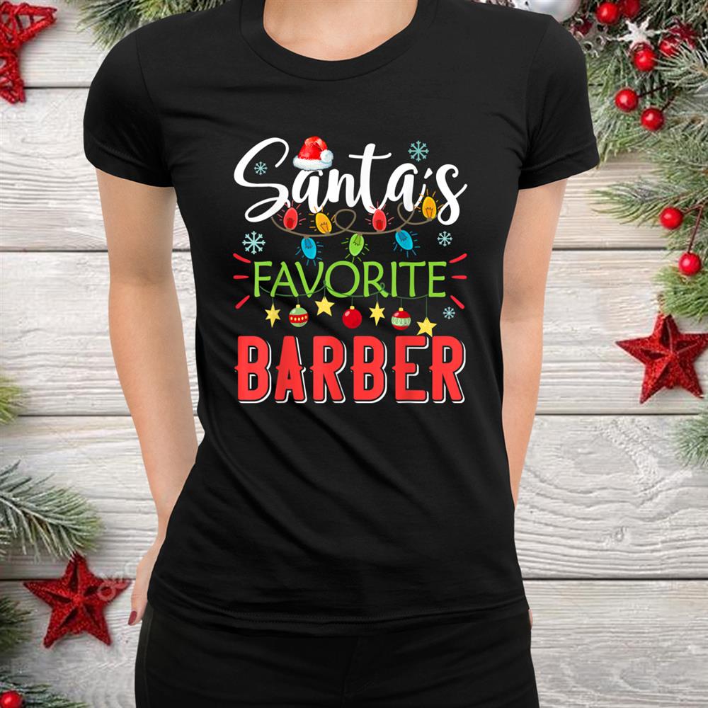 The Santa’s Favorite Barber Xmas Light Santa Hat Christmas Shirt is a perfect blend of holiday cheer and profession pride. Featuring a Santa hat and Christmas lights, this festive tee celebrates barbers who keep everyone looking sharp all year. Made from soft cotton, it’s comfortable for long days at the shop or relaxed nights at home. Ideal as a Christmas gift for barbers, stylists, or grooming pros, it’s fun and meaningful. The high-quality print stays bright after many washes. Spread joy, humor, and barber pride this holiday season with this charming and merry Christmas shirt.