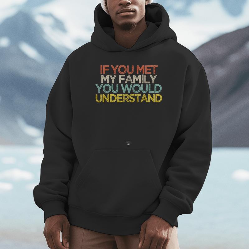 The Sarcastic Family Quote – If You Met My Family You Would Understand Saying Unisex Hoodie is for those who love humor that hits close to home. With its witty message, it’s perfect for family gatherings, parties, or as a funny gift for relatives who share your sense of humor. The high-quality print and soft material ensure comfort and durability, making it a cozy addition to your casual wardrobe. Wear it to spark laughter and relatable moments wherever you go—because we all know that every family has its quirks.
