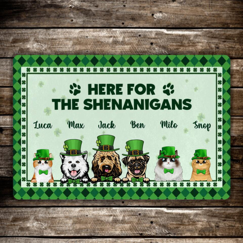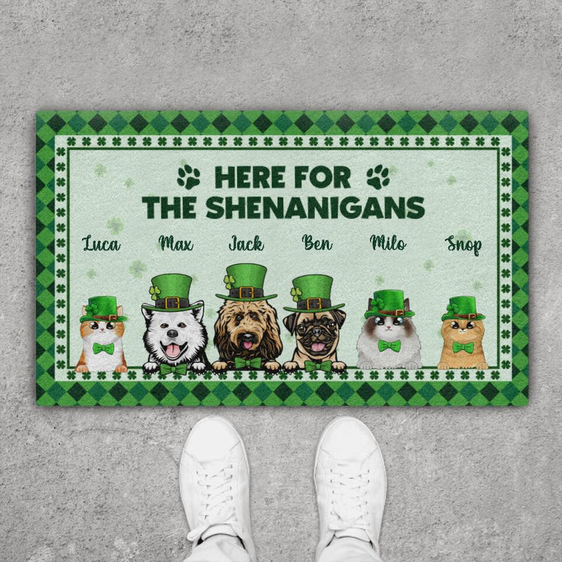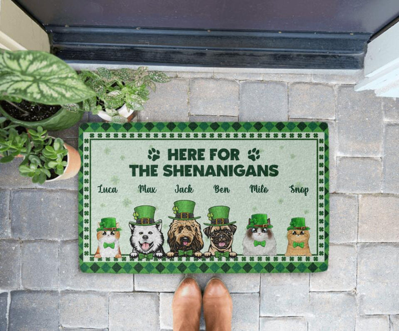 Let the fun and laughter begin with the Shenanigans Welcome Here personalized doormat. Designed for homes with cats, dogs, or both, this entryway accessory adds a playful, lighthearted touch. Personalization options allow you to make it truly your own with names, quotes, or a family message. Built from durable, high-quality materials, it resists wear and tear while keeping your entryway tidy. Perfect for family homes, pet owners, or anyone who loves a charming and functional welcome mat that reflects a fun-loving household.