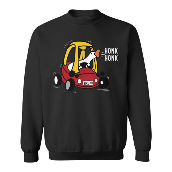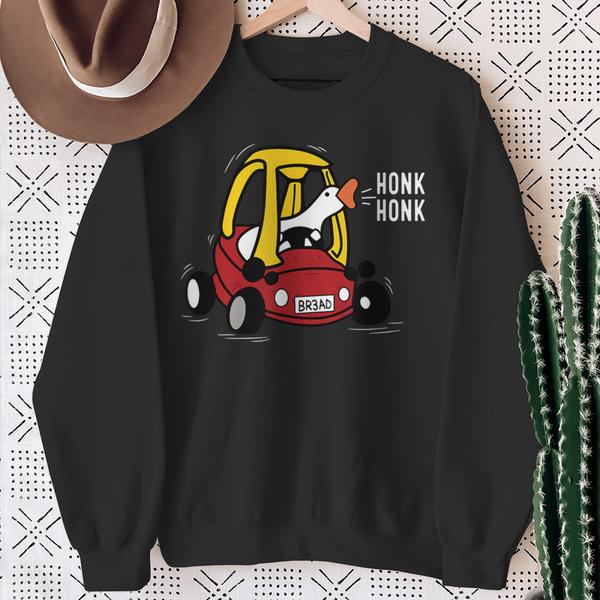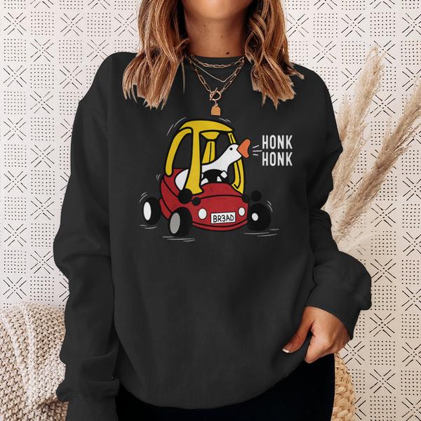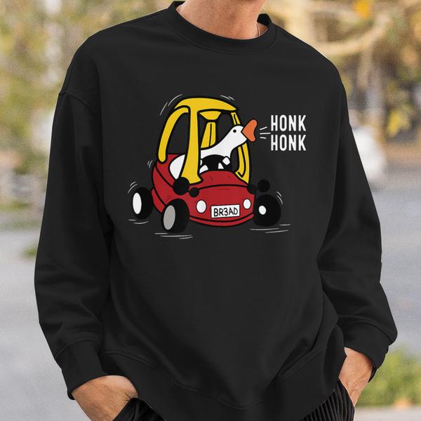 Silly Meme Sweater – Silly Goose Driving Nostalgic Toy Car Honk Honk Meme Sweatshirt