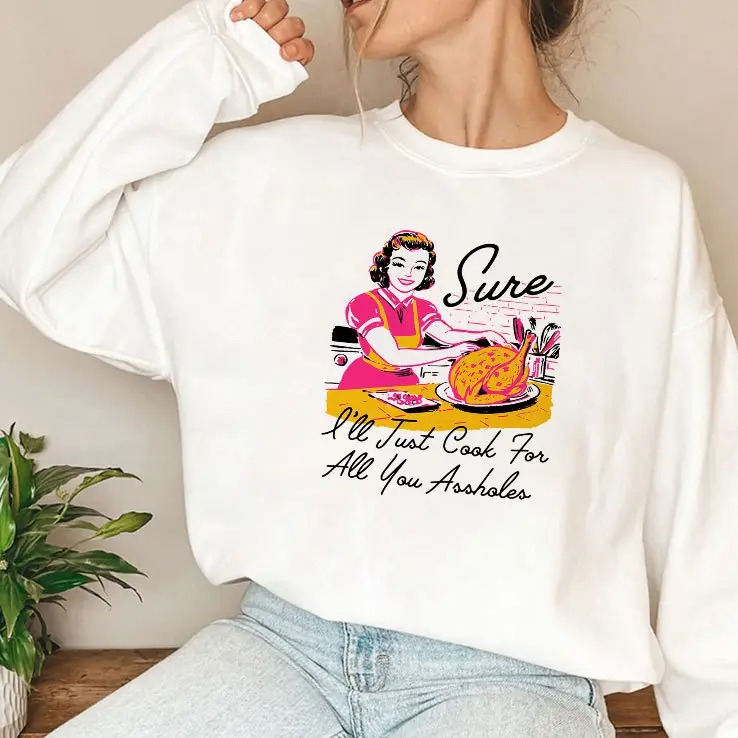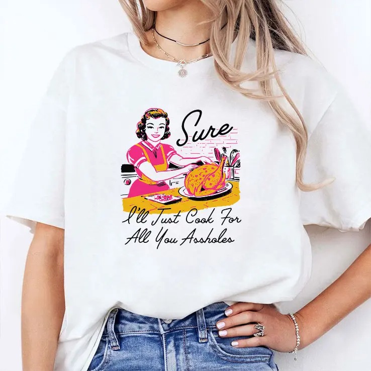 Get ready to turn heads and share laughs this holiday season with the Sure I’ll Just Cook For All You Assholes Thanksgiving Shirt. Perfect for those who bring humor to family gatherings, this shirt resonates with anyone tired of the holiday hustle but willing to tackle the food prep. Made from soft, high-quality materials, it’s comfortable enough for all-day wear and its playful design captures the essence of Thanksgiving with a twist. Ideal for friends, family, or anyone who appreciates a good laugh, this shirt ensures you’ll be the hit of the dinner table. Don’t miss out—grab your Sure I’ll Just Cook For All You Assholes Thanksgiving Shirt today and spice up your holiday wardrobe!