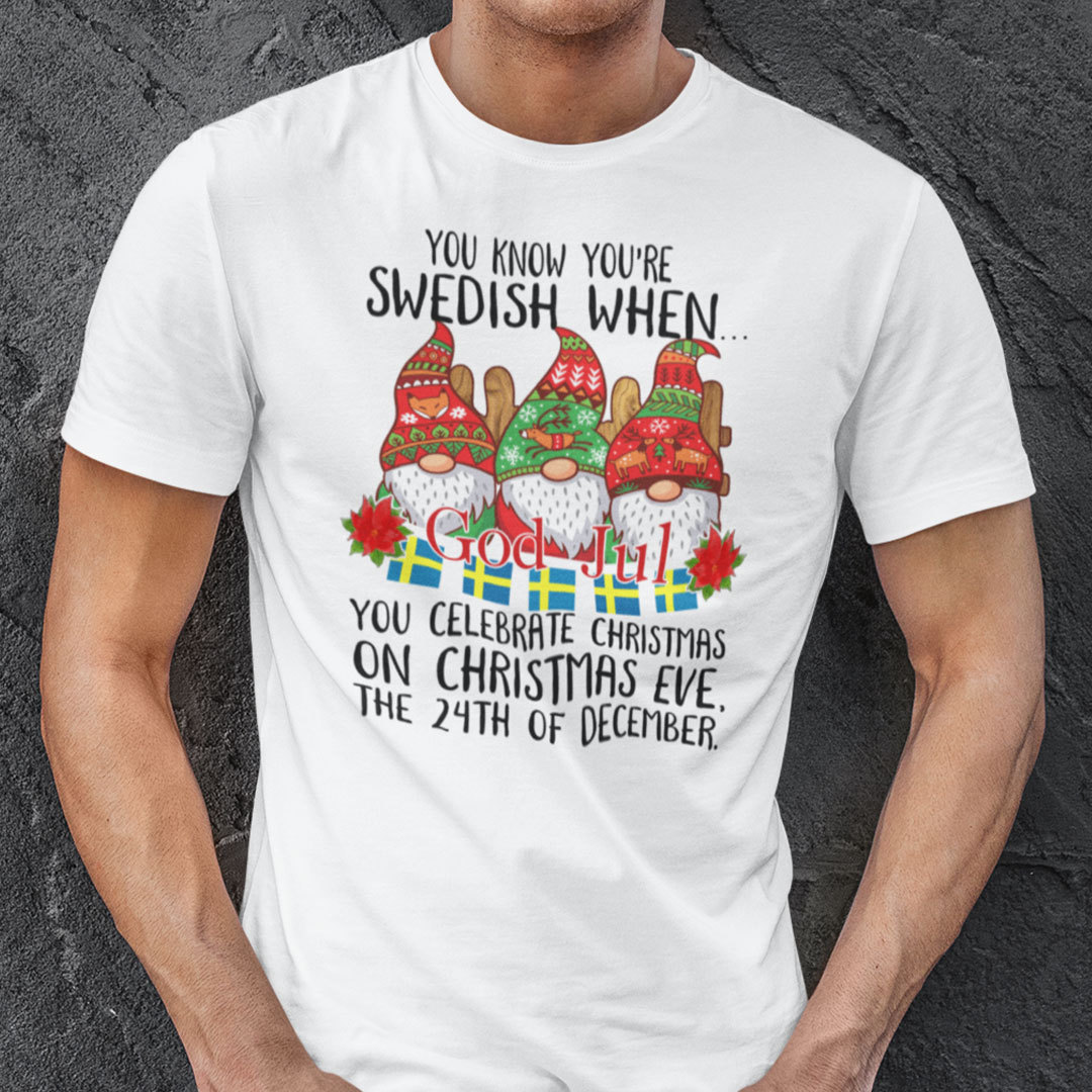 Embrace your Swedish heritage with the You Know You’re Swedish When You Celebrate Christmas On Christmas Eve Shirt. Perfect for anyone who loves to share their cherished Christmas Eve traditions, this shirt evokes the warm joys of the holiday season. Made from soft, breathable materials, it’s designed for ultimate comfort during festive gatherings. It’s an ideal gift for friends and family who have fond memories of celebrating Christmas the Swedish way. Whether you’re attending a holiday party or cozying up at home, this unique shirt expresses your pride in Swedish customs. Order your You Know You’re Swedish When You Celebrate Christmas On Christmas Eve Shirt today and spread that festive cheer!