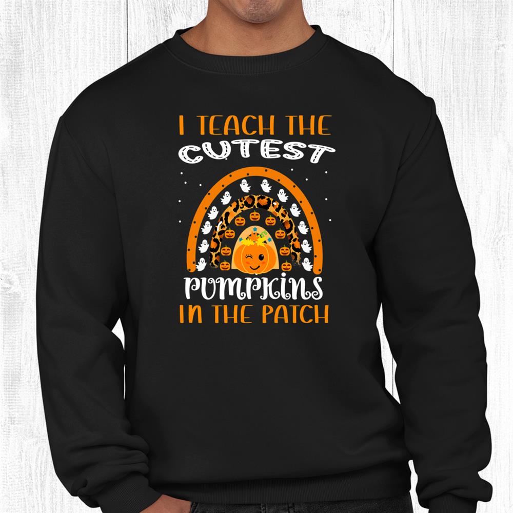 Teacher Pumpkin Outfit – I Teach The Cutest Pumpkins Patch Rainbow Halloween Leopard Shirt is made for teachers who light up the classroom during Halloween. Featuring a colorful pumpkin patch and fun rainbow-leopard details, this tee spreads festive cheer while staying stylish. The soft, breathable fabric makes it perfect for school events, class parties, or casual fall days. Celebrate your students and your love for teaching with this cute, funny Halloween shirt that’s both playful and professional.