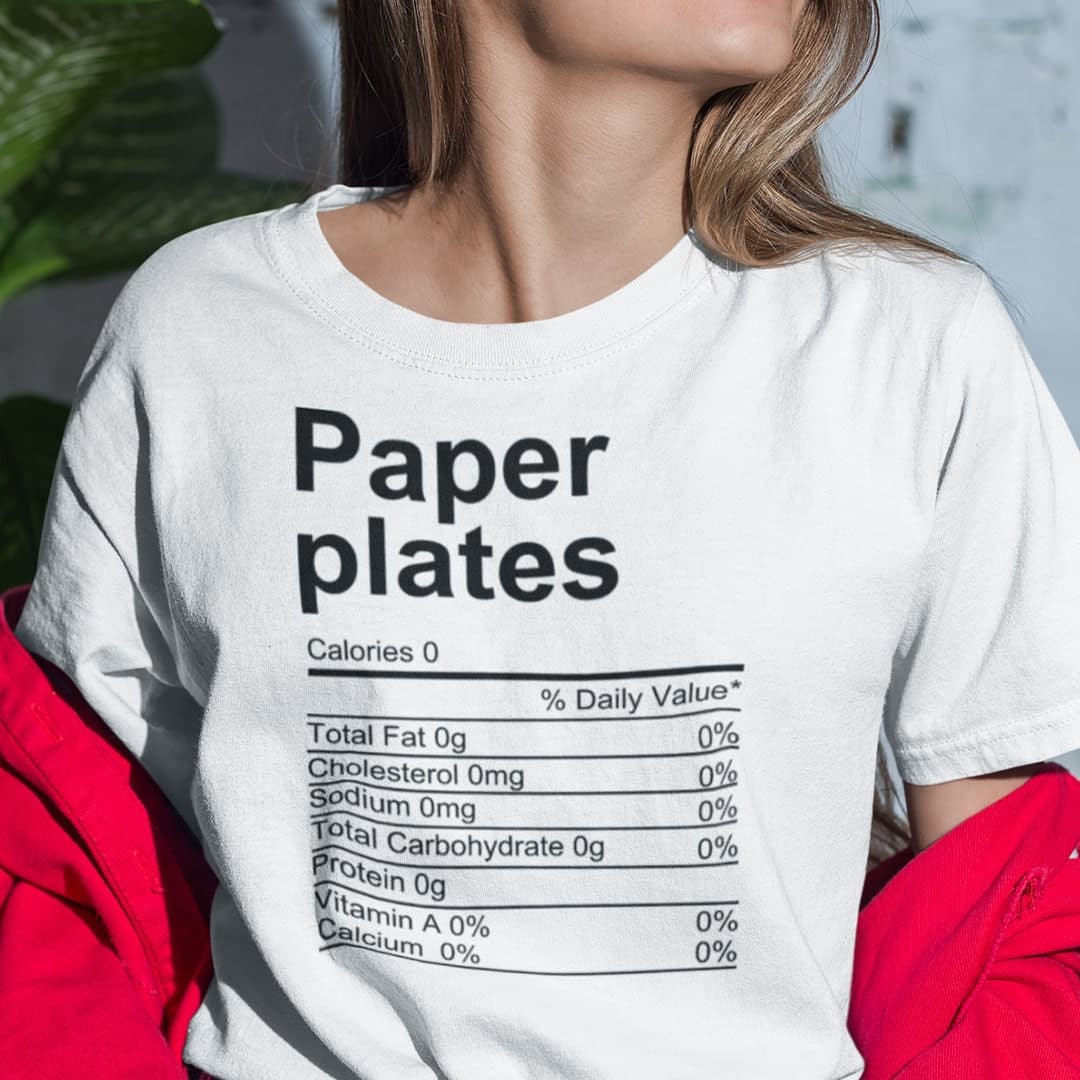 Get ready for Thanksgiving with our delightful Paper Plates Thanksgiving Nutrition Facts Shirt, designed for food lovers who enjoy a good laugh. This funny shirt features whimsical nutrition facts about traditional Thanksgiving items, making it a great conversation starter at your festive gathering. Whether you’re hosting a feast or attending a potluck, this shirt captures the spirit of the holiday while adding a humorous twist. Made from soft, high-quality fabric, it ensures comfort as you indulge in your favorite dishes. Perfect for families, friends, or anyone who loves food, the Paper Plates Thanksgiving Nutrition Facts Shirt is a must-have addition to your holiday wardrobe. Spread joy and laughter with this fun piece, and make your Thanksgiving truly memorable!