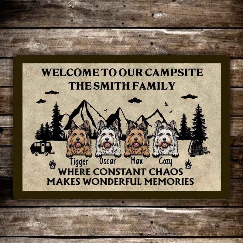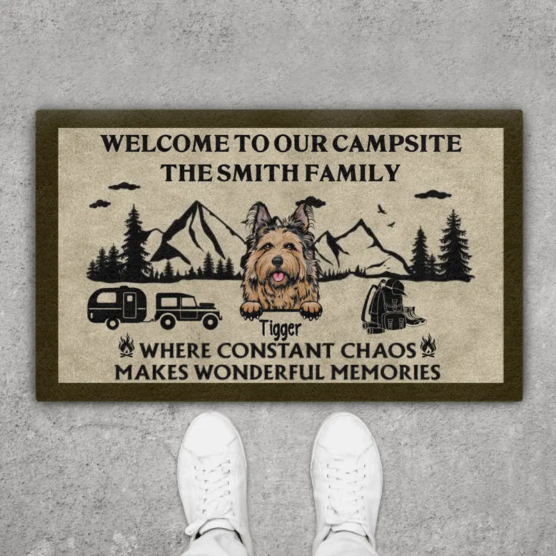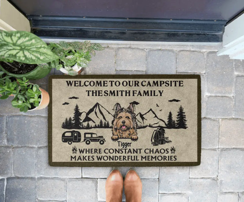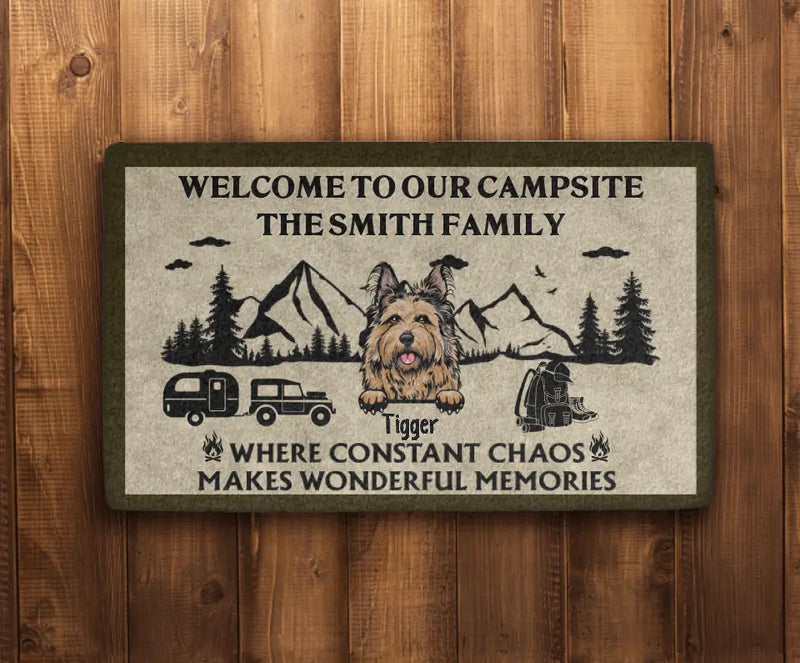 Bring warmth, charm, and a touch of outdoor adventure to your doorstep with the The Family Welcomes You to Our Campsite personalized doormat. Perfect for families who love camping and their four-legged companions, this mat combines humor and practicality. Crafted from durable materials, it keeps dirt and debris outside while showcasing your love for nature, dogs, and shared adventures. Personalize it with names or a family message to create a unique and welcoming entryway. This doormat is ideal for housewarmings, birthdays, or simply adding personality to your home while celebrating your love for the great outdoors.