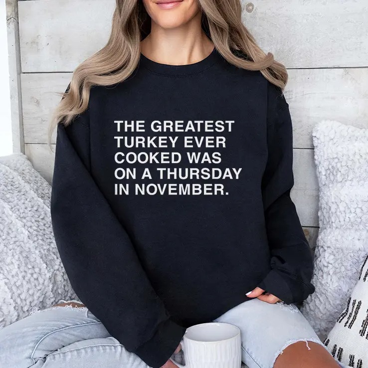 The Greatest Turkey Ever Cooked Was On A Thursday In November Shirt is the ideal attire for Thanksgiving enthusiasts who treasure family gatherings and delicious feasts. This unique and heartfelt graphic tee resonates with those who appreciate the warm memories of past Thanksgivings while crafting new traditions. Designed for comfort and style, it serves as a conversation starter at any holiday gathering, reminding everyone of the joy that a perfectly cooked turkey brings. Whether you’re hosting the feast or attending as a guest, this shirt is a must-have for anyone who celebrates the significance of the holiday. Make your Thanksgiving memorable with The Greatest Turkey Ever Cooked Was On A Thursday In November Shirt, a perfect blend of humor and sentiment that will warm your heart and those around you.