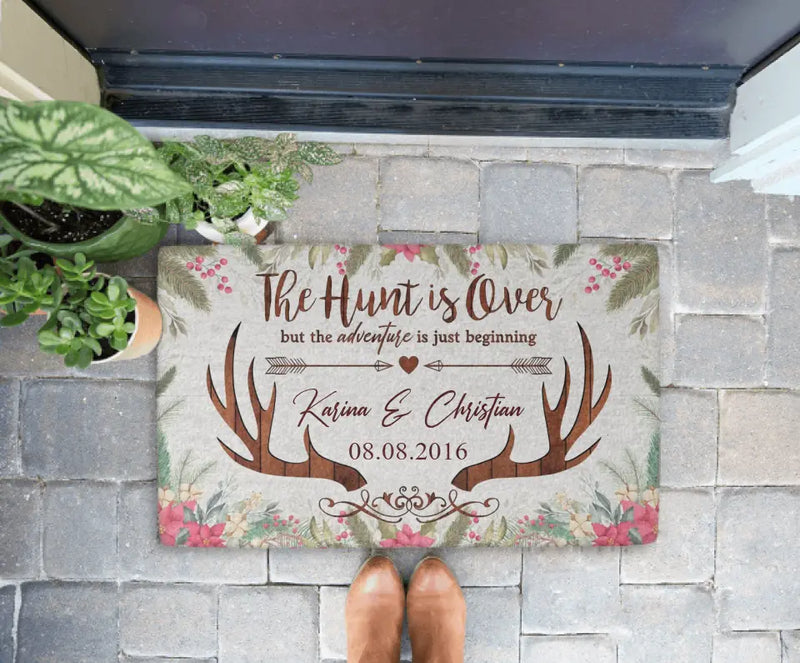 When love meets the great outdoors, The Hunt Is Over But The Adventure Is Just Beginning perfectly captures that journey. This custom doormat celebrates the bond between couples who share life’s biggest adventures, both on and off the field. Built with heavy-duty coir and a non-slip base, it’s durable enough for any season. Personalize it with names, a date, or a short message to commemorate your love story. Whether newlyweds or lifelong partners, hunters or adventurers, this doormat stands as a daily reminder that the greatest catch is love itself. It’s more than décor — it’s a love story at your doorstep.