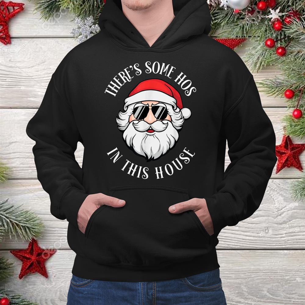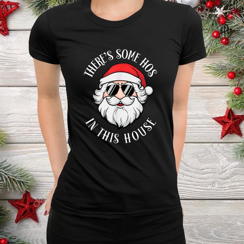 There’s Some Hos In This House Santa Claus Christmas Shirt – Funny Santa Holiday Party Tee for Men Women
