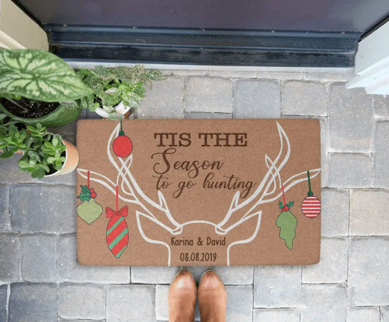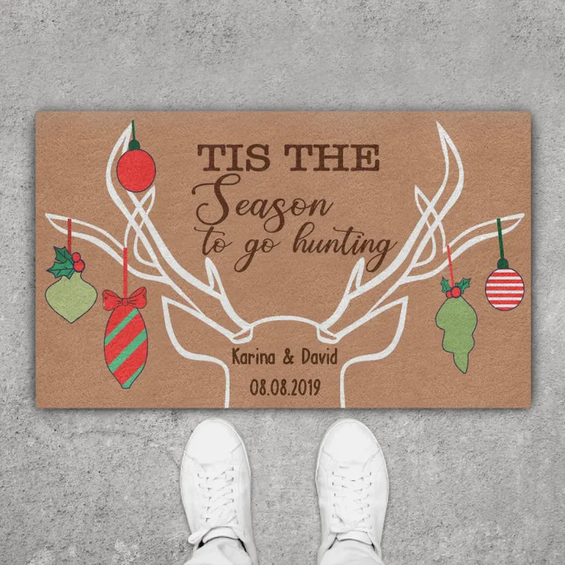 Tis The Season To Go Hunting – Christmas Personalized Gifts Custom Hunting Doormat For Family, Hunting Lovers