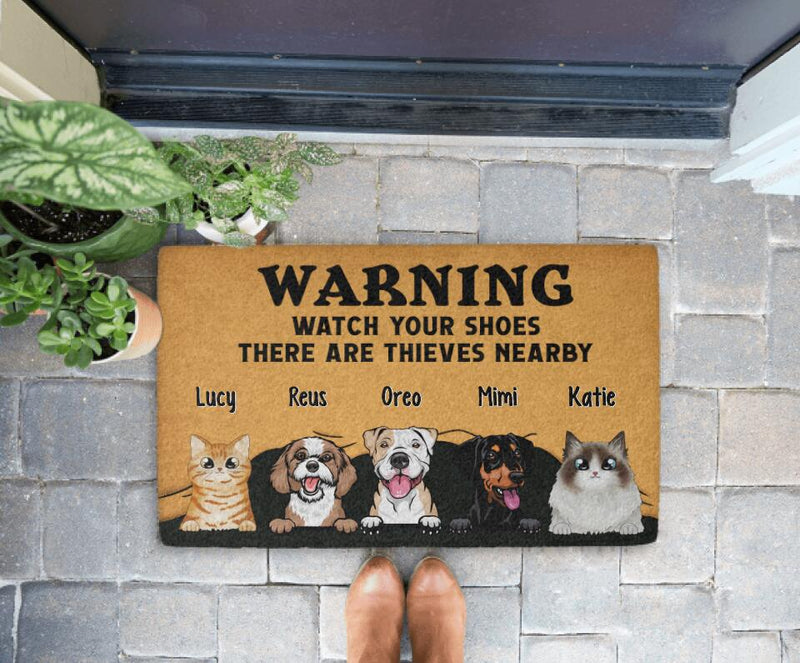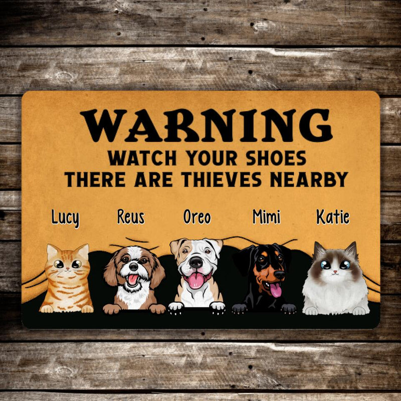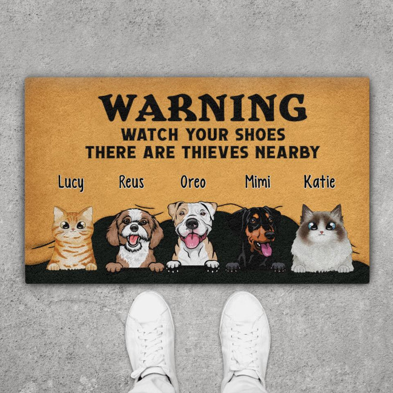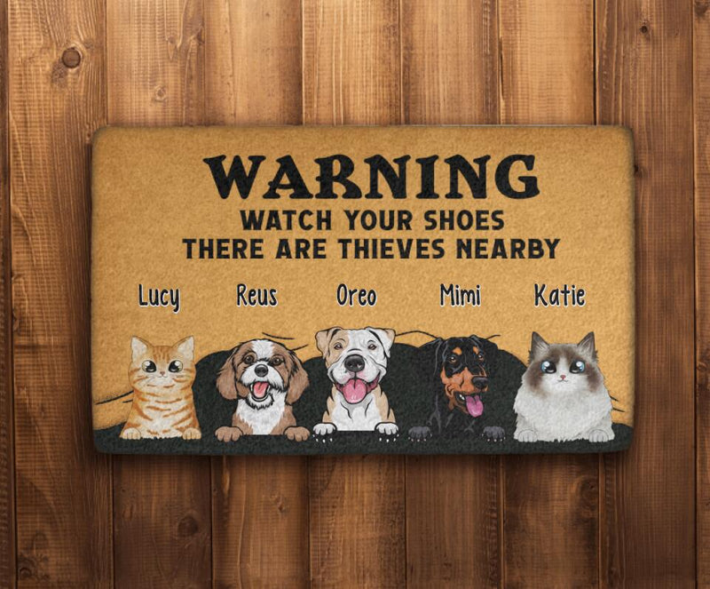 Keep your home fun and protected with the Warning There Are Pet Thieves Nearby personalized doormat — a hilarious and eye-catching way to greet guests while showing love for your furry friends. Designed for cat and dog lovers alike, this custom mat adds both charm and character to any doorstep. Crafted from durable coir and backed with non-slip material, it’s perfect for indoor or outdoor use. Add your pets’ names or a witty note to make it uniquely yours. Ideal for families who adore their animals, this cat and dog doormat makes a great housewarming or holiday gift. It keeps dirt away while making visitors smile. Celebrate your pets’ personalities and warn everyone that your home is guarded by paws, not alarms.
