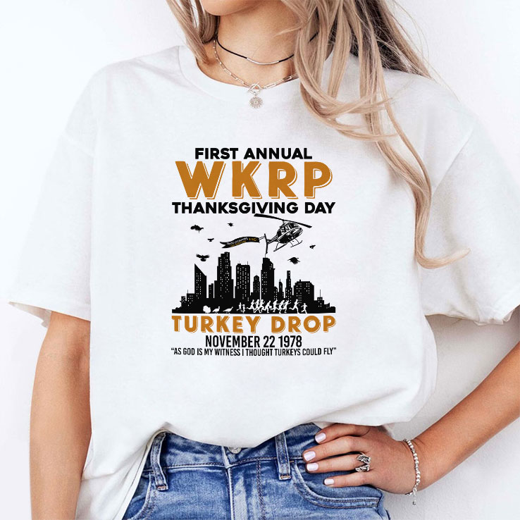 WKRP Turkey Drop T Shirt is the perfect way to bring humor to your Thanksgiving celebrations. Featuring the iconic phrase ‘As God Is My Witness,’ this shirt captures the essence of classic television comedy and nostalgia. Ideal for die-hard fans of the beloved WKRP in Cincinnati series or anyone with a love for Thanksgiving-themed humor. This shirt isn’t just a piece of clothing; it’s a conversation starter that allows you to share laughs and holiday memories with friends and family. Made from high-quality materials, the WKRP Turkey Drop T Shirt is comfortable for all-day wear, whether you’re at the dinner table or watching holiday specials. Don’t miss out—grab yours and spread joy this Thanksgiving!
