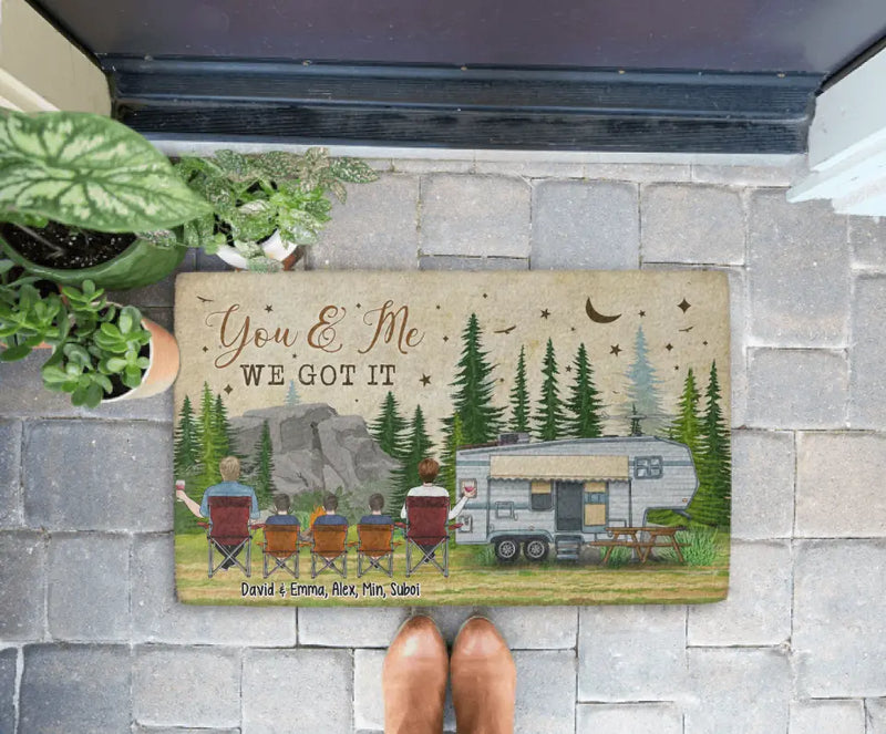 Celebrate love and adventure with the You And Me We Got It personalized camping doormat, the perfect gift for couples who share a passion for the great outdoors. This custom piece beautifully represents unity and partnership, ideal for any family cabin, camper, or home. Crafted with durable coir fibers and a non-slip backing, it’s built to last through every camping season. Add your names or a special date to make it a one-of-a-kind keepsake. Whether used at the RV, tent, or front porch, this doormat captures the spirit of love and exploration. It’s more than a decoration — it’s a daily reminder that together, you’ve got it all.